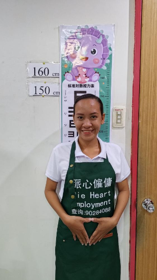 國籍: 菲律賓 年齡: 25歲 婚姻狀況: 未婚 海外經驗: 菲律賓 (PHILIPPINE年) 工作經驗: 照顧嬰兒, 照顧小孩, 照顧寵物, 家務, 洗車, 烹飪